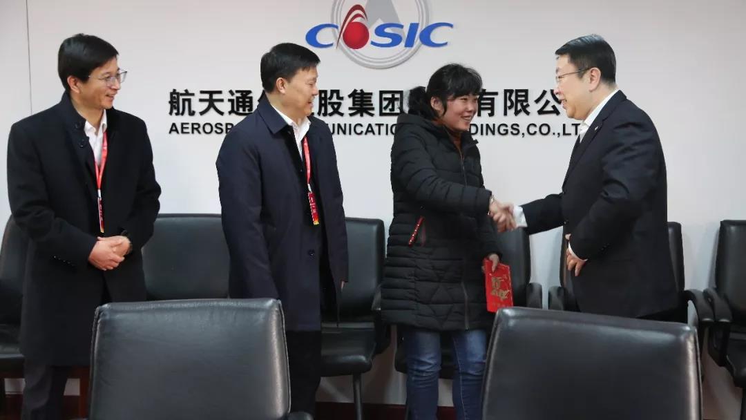 1月24日,集團公司黨組成員、副總經(jīng)理陳國瑛走訪慰問航天通信困難職工,為困難職工送去了組織的關(guān)懷、新年的祝福和慰問金。航天通信黨委書記、董事長余德海,總裁、黨委副書記崔維兵陪同。