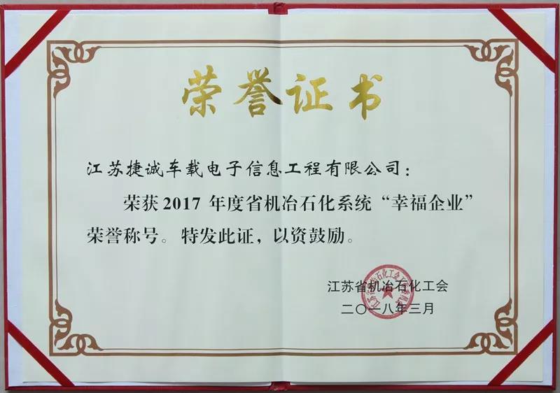 為深入貫徹黨的十九大精神和習(xí)近平總書記系列講話精神,促進(jìn)系統(tǒng)企業(yè)和諧、文明、綠色、健康發(fā)展,提升企業(yè)職工的幸福感、獲得感、歸屬感。2017年江蘇省機(jī)冶石化工會(huì)以“保障職工勞動(dòng)安全健康”為主題,深化幸福企業(yè)創(chuàng)建。航天通信江蘇捷誠(chéng)公司積極響應(yīng),對(duì)標(biāo)創(chuàng)建要求,走進(jìn)基層,聆聽(tīng)職工心聲,精心組織,圍繞企業(yè)發(fā)展大局,扎實(shí)推進(jìn)幸福企業(yè)創(chuàng)建,經(jīng)不懈努力榮獲“2017年度省機(jī)冶石化系統(tǒng)幸福企業(yè)”稱號(hào)。
