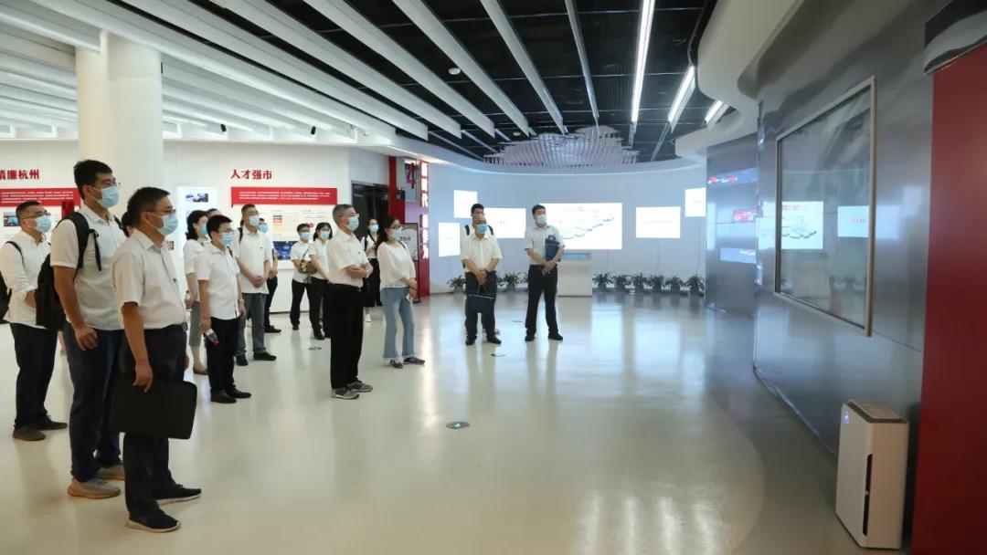 隨后,航天通信一行來(lái)到了黨建宣傳展示廳。通過(guò)觀摩展示墻的圖片、影像等信息回顧了習(xí)近平總書(shū)記對(duì)杭州的深情囑托和殷切期望,學(xué)習(xí)了解了杭州在新時(shí)代新思想指引下的新實(shí)踐、新作為、新風(fēng)采、新成就,駐足聆聽(tīng)了陳立群、孔勝東、吳菊萍等感人故事,一段段優(yōu)秀事跡深深觸動(dòng)了在場(chǎng)黨員。
