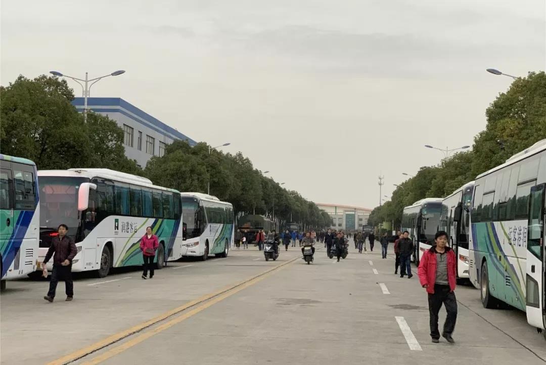 叮鈴鈴···下班的鈴聲一響起,江蘇捷誠公司的主干道上就陸陸續續有職工走出來,笑呵呵地坐上了新通勤車。